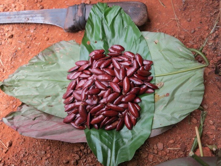 Fresh kernels of Klainedoxa gabonensis (Irvingiaceae) , one of the most frequently consumed wild seed species around Lomie. Picture: S. Gallois.